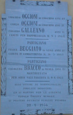 7 luglio 1944, successivamente a uno scontro tra partigiani e tedeschi viene compiuta una rappresaglia: